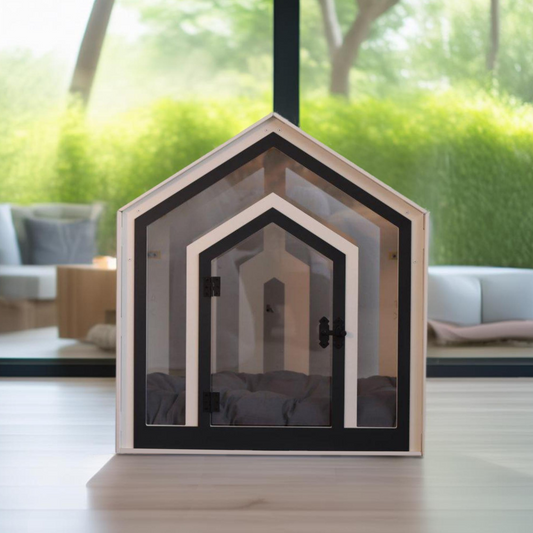 Hundehütte Calmo Weiss aus Holz mit Kissen & wasserfestem Boden für kleine & große Hunde