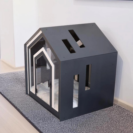 Hundehütte Calmo Dunkelgrau aus Holz mit Kissen & wasserfestem Boden für kleine & große Hunde