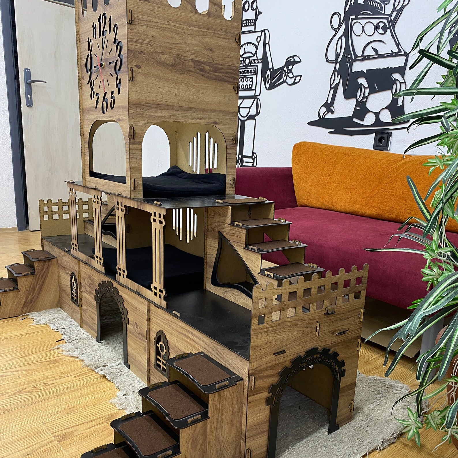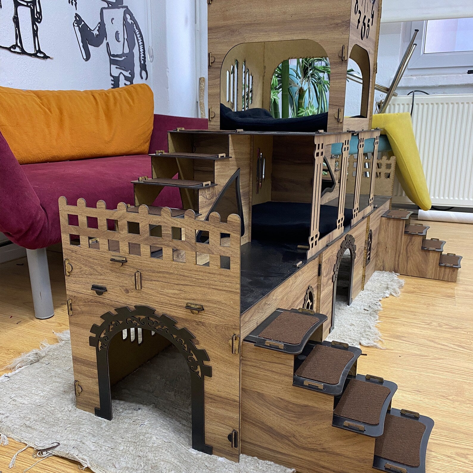 Mit viel Liebe zum Detail aus hochwertigem, 3 mm starkem, antibakteriellem Sperrholz gefertigt – ein echtes Highlight in jedem Tierhaushalt.