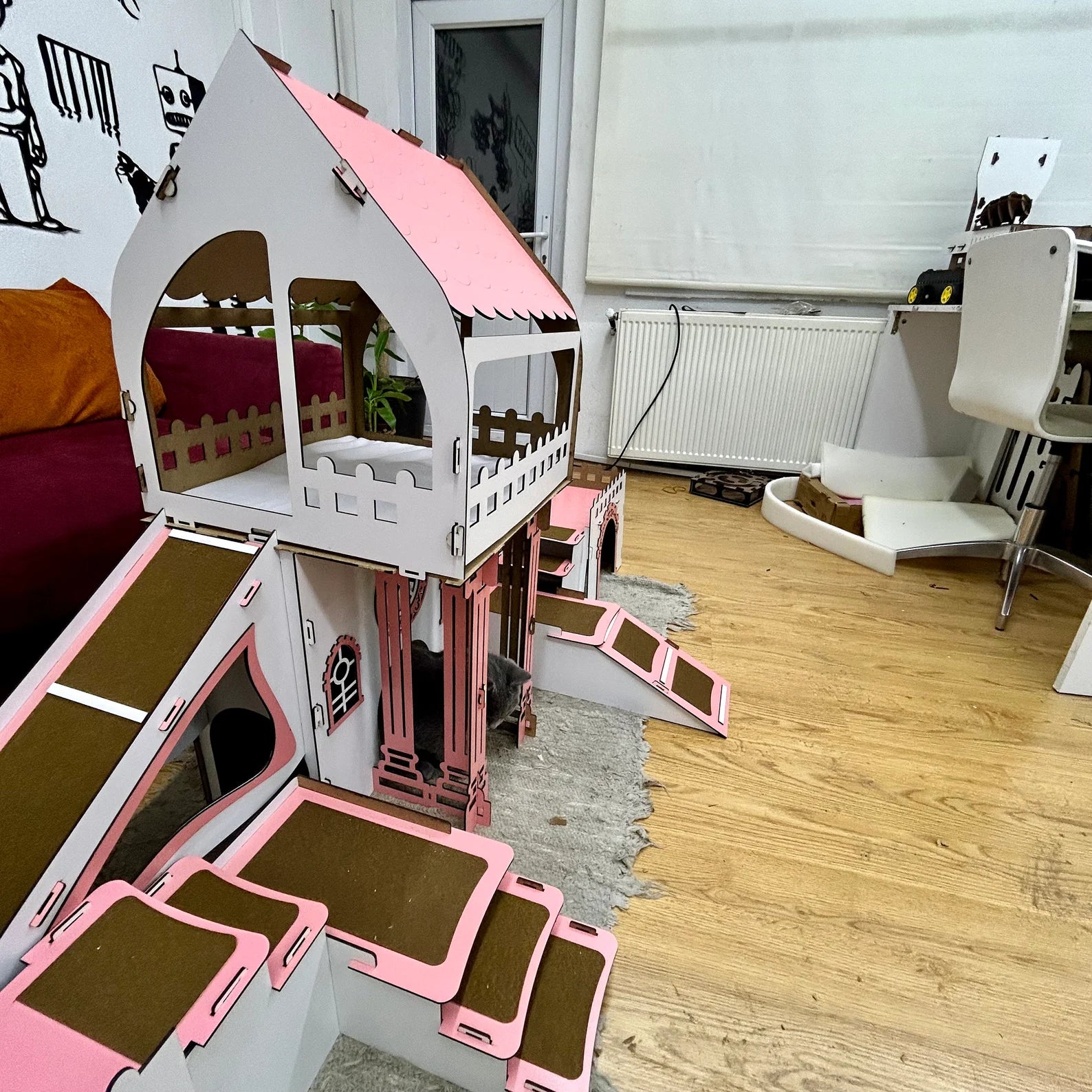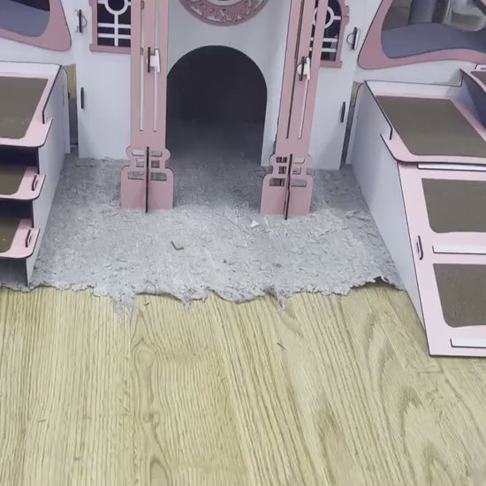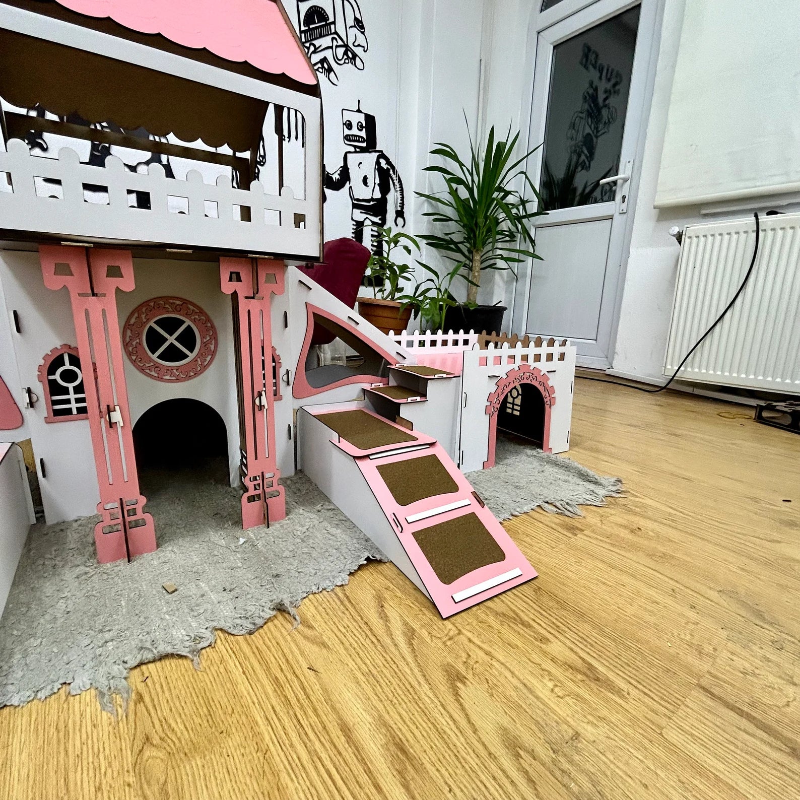 Verwandeln Sie das Leben Ihrer Kaninchen in ein wahres Abenteuer mit unserer handgefertigten, dreistöckigen Kaninchenburg mit Brücken, Rampen und Terrassen. Diese Burg bietet Ihren kleinen Lieblingen nicht nur einen sicheren Rückzugsort, sondern auch maximale Spielfläche, Bewegungsfreiheit und ein stilvolles Zuhause.