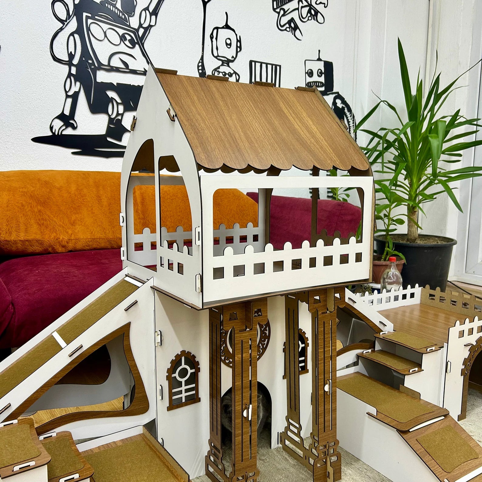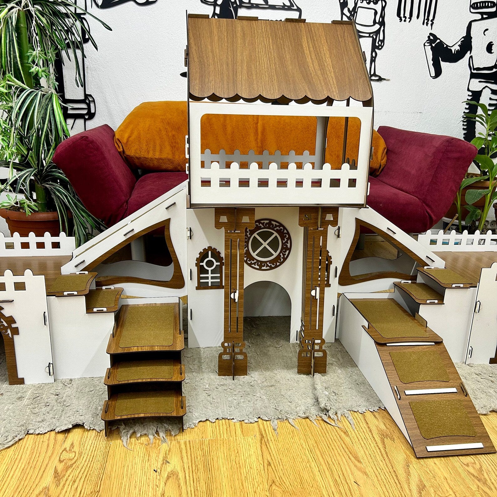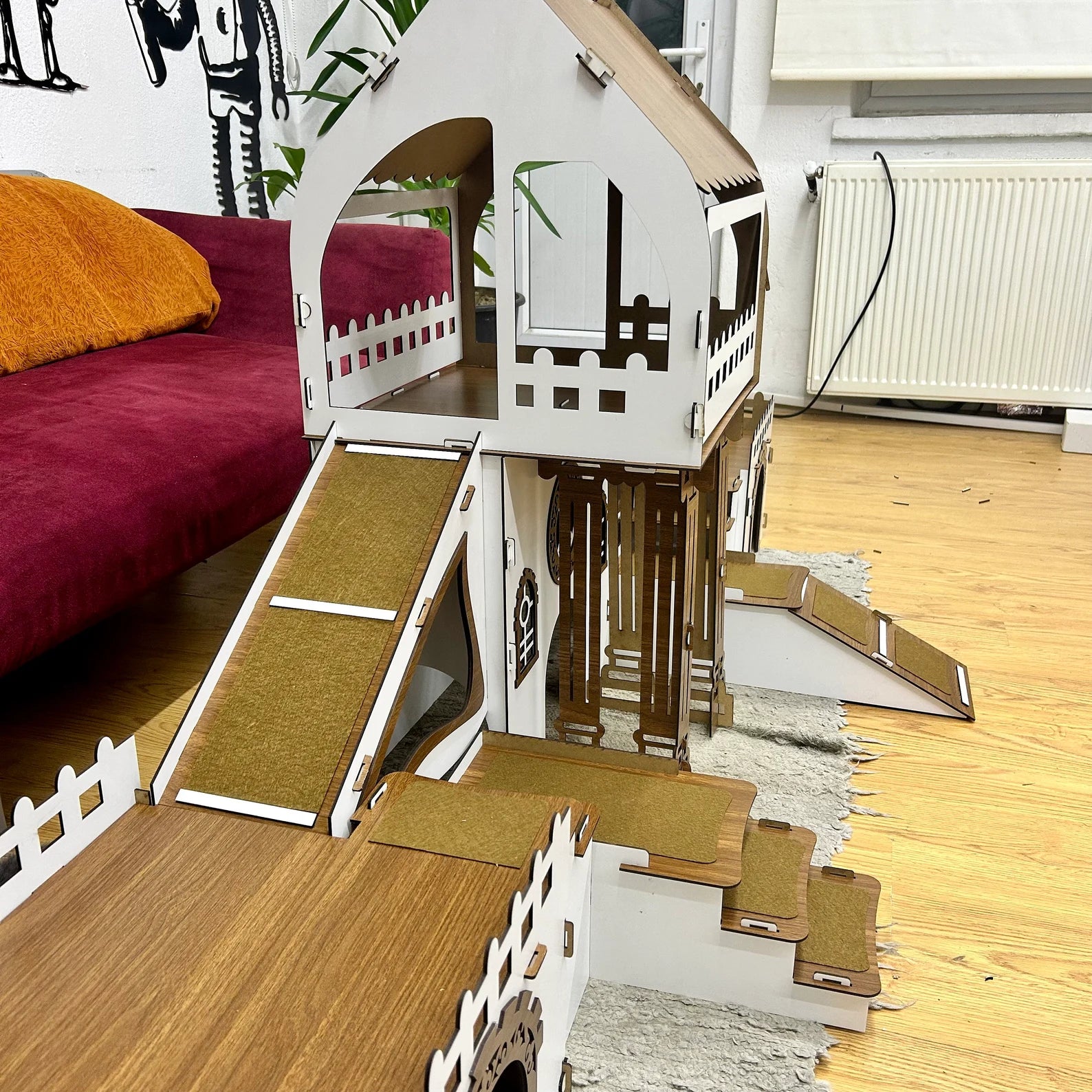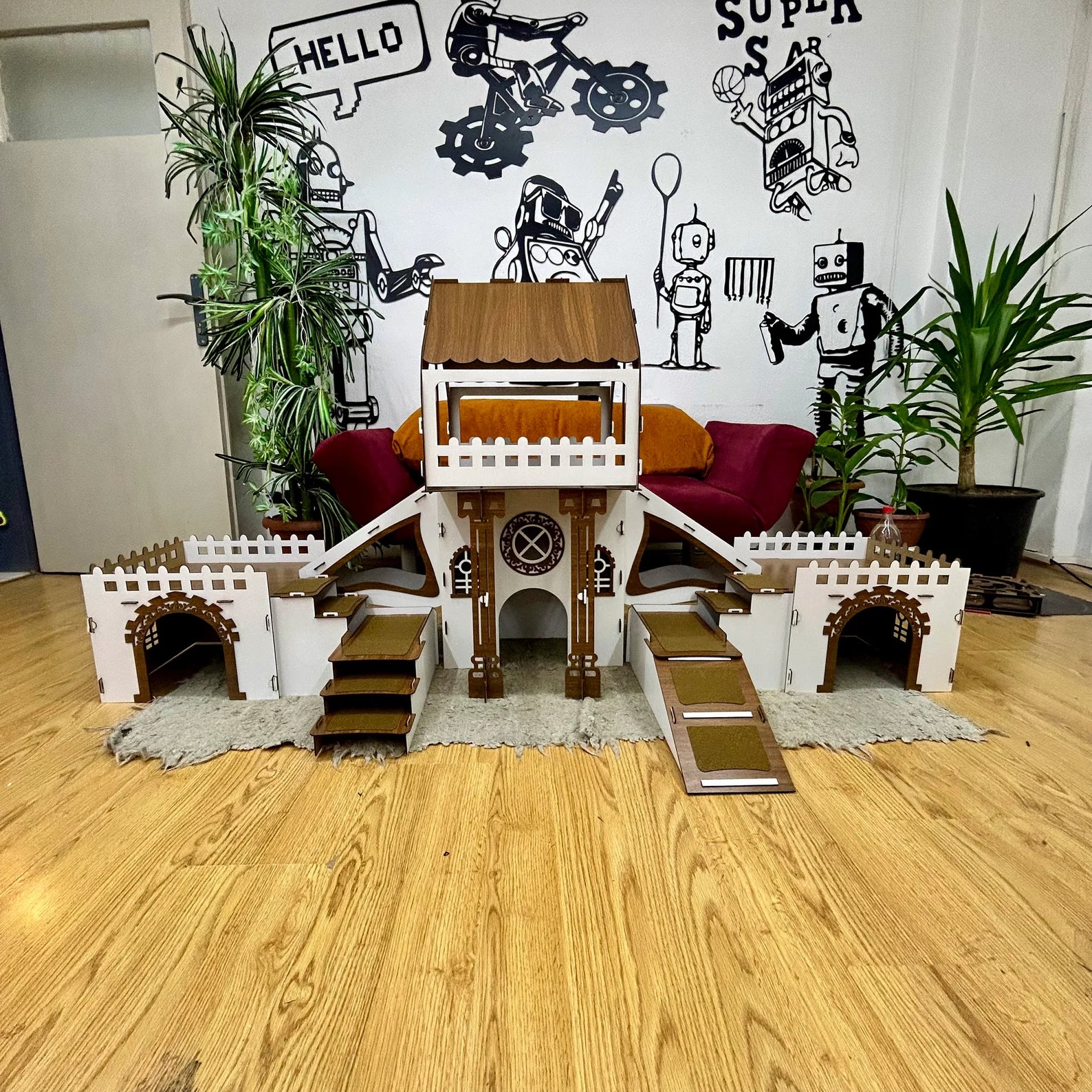 Verwandeln Sie das Leben Ihrer Kaninchen in ein wahres Abenteuer mit unserer handgefertigten, dreistöckigen Kaninchenburg mit Brücken, Rampen und Terrassen. Diese Burg bietet Ihren kleinen Lieblingen nicht nur einen sicheren Rückzugsort, sondern auch maximale Spielfläche, Bewegungsfreiheit und ein stilvolles Zuhause.