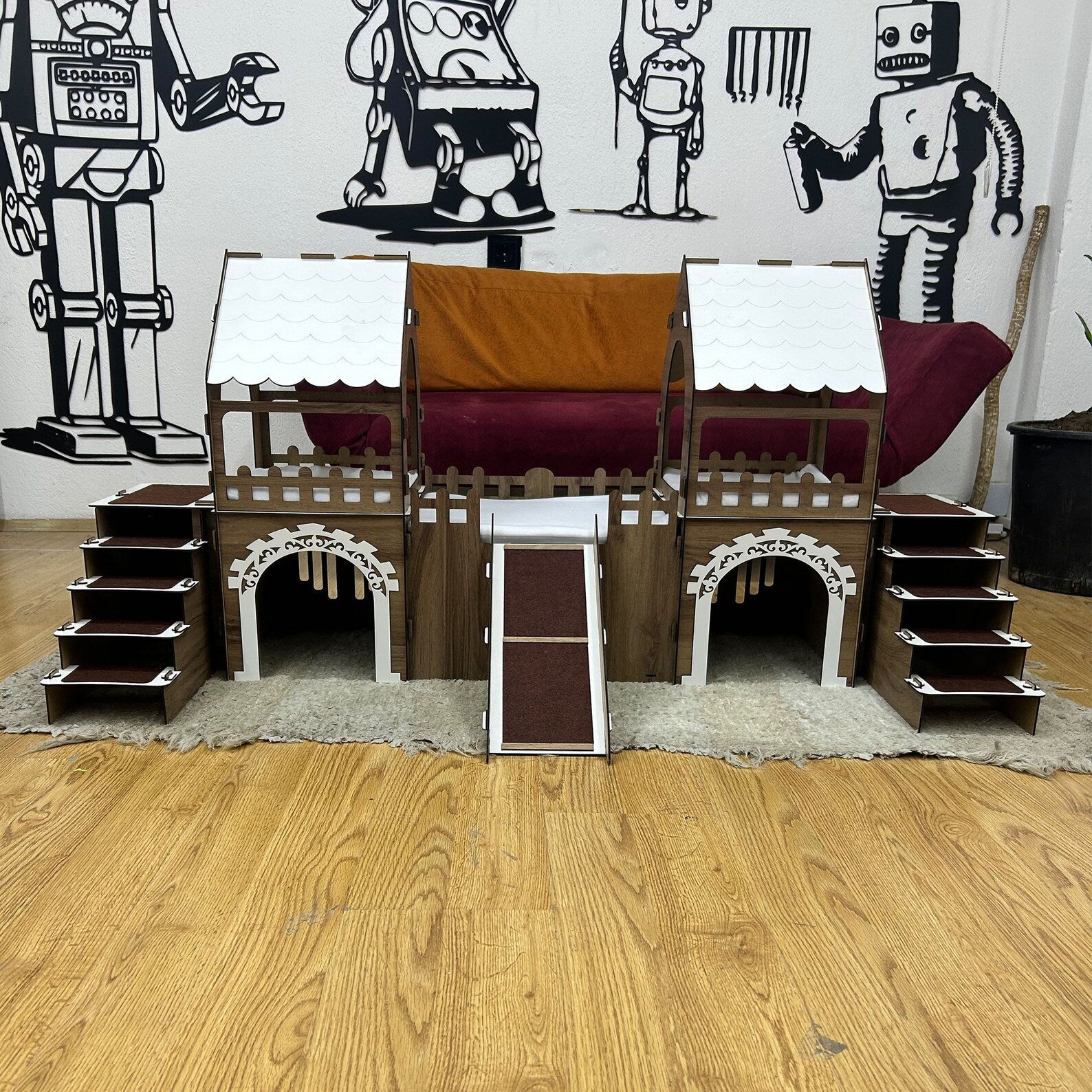 Luxus-Kaninchenvilla „Duplex Dreams“ – mit Rampe, Terrasse & Spieletagen