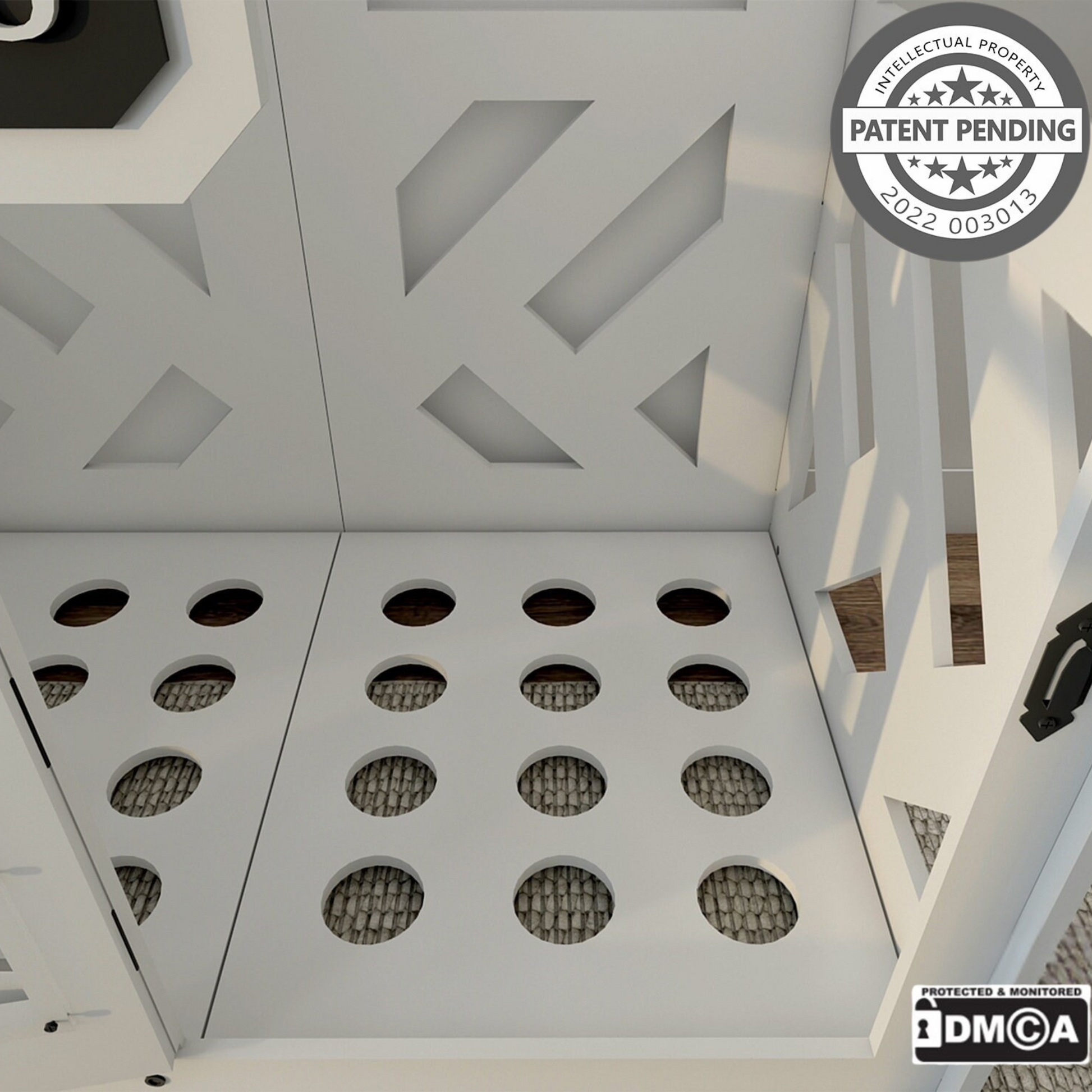 Das Hundehäuschen wird mit einem weichen, antibakteriellen Kissen geliefert, dessen Bezug maschinenwaschbar bei 30 °C ist. So bleibt der Schlafplatz deines Lieblings hygienisch und pflegeleicht. Du kannst die Kissenfarbe ganz individuell in Weiß, Elfenbein, Grau oder Schwarz wählen – passend zu deiner Einrichtung. Der wasserfeste Unterboden schützt zuverlässig vor Feuchtigkeit und lässt sich ebenfalls mühelos reinigen.